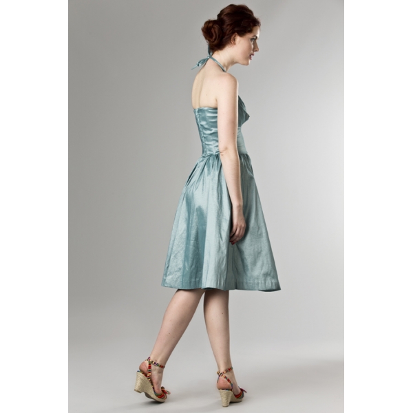 La gonna a ruota intera è lunga fino al ginocchio, mette in risalto i fianchi, donando una perfetta silhouette a clessidra. Può essere indossato anche con una sottogonna, per uno stile retrò davvero perfetto. Il tessuto lucido lo rende elegante, perfetto per essere indossato a un matrimonio estivo!